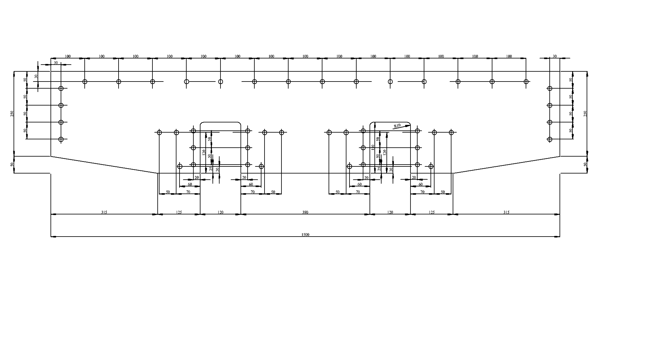 Dimensioned drawing of frames and buffer beams. Note that the dimension lines have suffered somewhat in the conversion to jpg format, particularly on the buffer beams drawing.